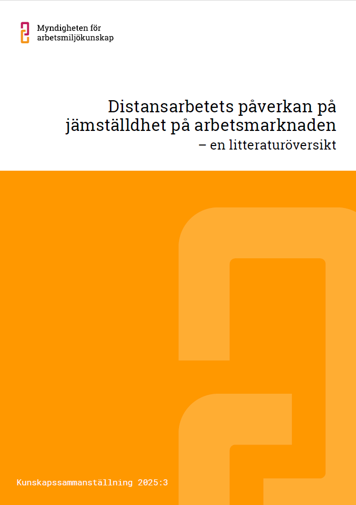 I december 2023 gav regeringen Myndigheten för arbetsmiljökunskap uppdraget att redovisa hur ett ökat distansarbete efter covid-19-pandemin påverkar jämställdheten på arbetsmarknaden. För att svara på uppdraget genomförde myndigheten två projekt; en kvantitativ studie som undersöker sambandet mellan distansarbete och antalet arbetade timmar per vecka för kvinnor och män samt föreliggande rapport som är en kunskapssammanställning av befintlig forskning inom området distansarbete och jämställdhet på arbetsmarknaden.