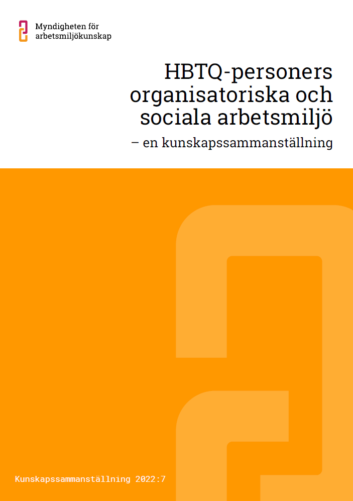 Här presenteras befintlig forskning om den organisatoriska och sociala arbetsmiljön för hbtq-personer, som Myndigheten för arbetsmiljökunskap har kartlagt och sammanfattat enligt regeringsbeslut år 2020. Mot bakgrund av regeringsbeslutet initierade myndigheten ett projekt som innefattade en kunskapssammanställning med fokus på både främjande och hindrande faktorer kring den organisatoriska och sociala arbetsmiljön för hbtq-personer.
