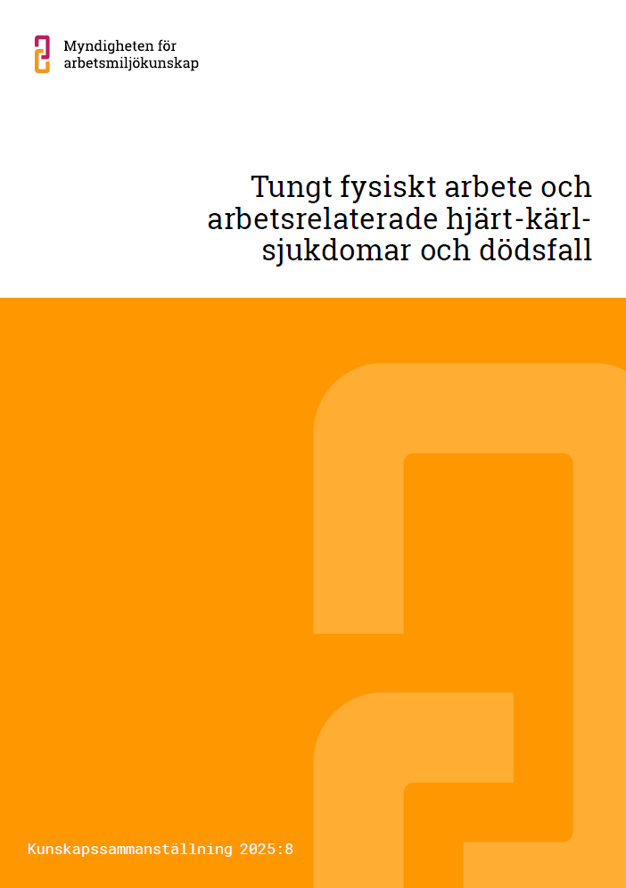 Långvarigt eller ihållande tungt fysiskt arbete är vanligt på svenska arbetsplatser och kan innebära allvarliga hälsorisker. De två nya kunskapssammanställningarna ger en samlad bild av svensk och nordisk forskning om dessa samband. Den ena fokuserar på hjärt-kärlsjukdomar och dödsfall, medan den andra undersöker kopplingen till sjukskrivning och sjukersättning. Tillsammans bidrar de med viktig kunskap om hur arbetsmiljön påverkar hälsan och arbetsförmågan, och pekar på behovet av förebyggande insatser för att fler ska kunna arbeta ett helt och hållbart arbetsliv.