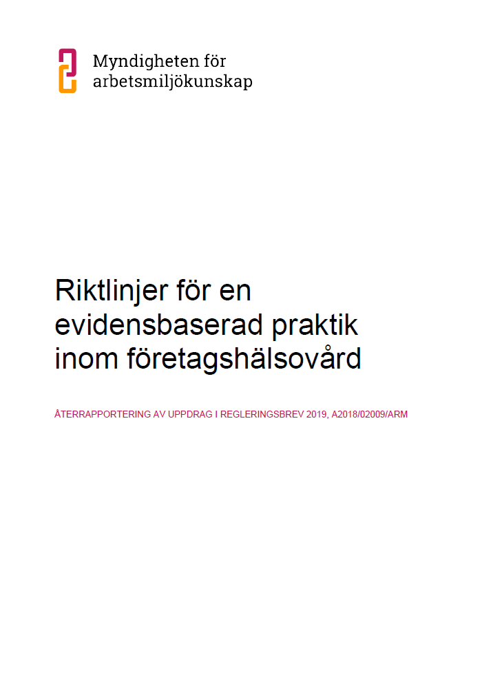 I ett regeringsbeslut 2018 gavs Myndigheten för arbetsmiljökunskap i uppdrag att utveckla och sprida riktlinjer för en evidensbaserad praktik i företagshälsovården. Detta uppdrag redovisades i rapporten om riktlinjer för evidensbaserad praktik inom företagshälsovården, i samband med myndighetens årsredovisning för 2018.