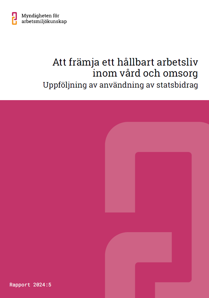Myndigheten för arbetsmiljökunskap har haft regeringens uppdrag att genomföra en uppföljning av användningen av statsbidraget för att främja ett hållbart arbetsliv inom vård och omsorg under åren 2021-2022. Rapporten lyfter fram projekt som på olika sätt har identifierats som lärande exempel med stöd av bidraget.