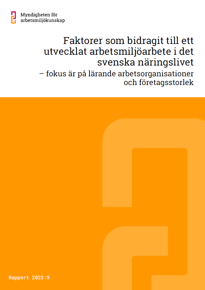 I rapporten presenteras resultatet från en enkätundersökning som Myndigheten för arbetsmiljökunskap genomförde 2019–2020. Den visar framförallt ett samband mellan lärande arbetsorganisation och arbetsmiljöarbete men också visst samband mellan företagsstorlek och arbetsmiljöarbete i det svenska näringslivet.