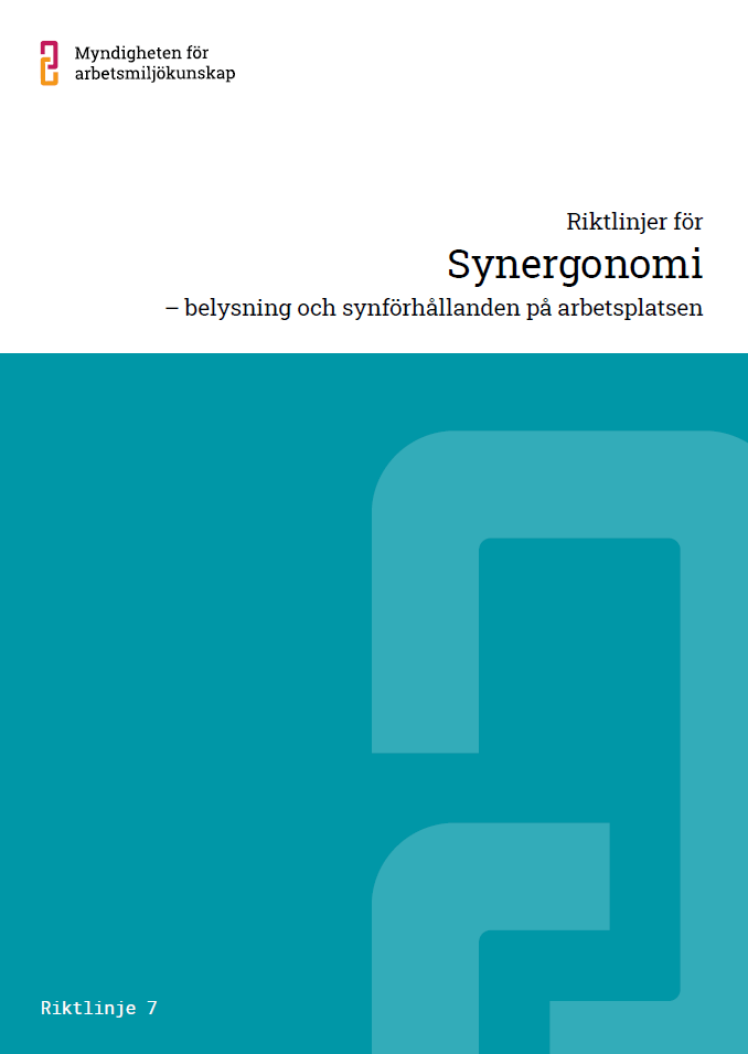 Det finns en engelsk version av riktlinjerna för synergonomi att ladda ner; Guidelines for Visual Ergonomics – Lightning and visual in the workplace.