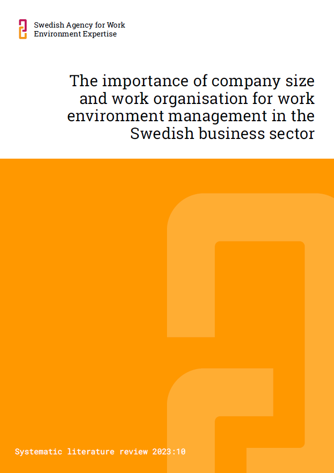 Work is expected to be safe and secure while being characterised by development, participation, empowerment and learning. Research that focuses on these aspects is therefore important in the pursuit of a deeper understanding of how we can improve our workplaces, regardless of size and organisation. Against this background, this report compiles national and international research on how work environment management is carried out in companies in the business sector, with a focus on whether work environment management differs depending on company size or work organisation. This review of existing knowledge aims to identify scientific articles that highlight the relationship between work environment management and company size and between work environment management and work organisation in the business sector.