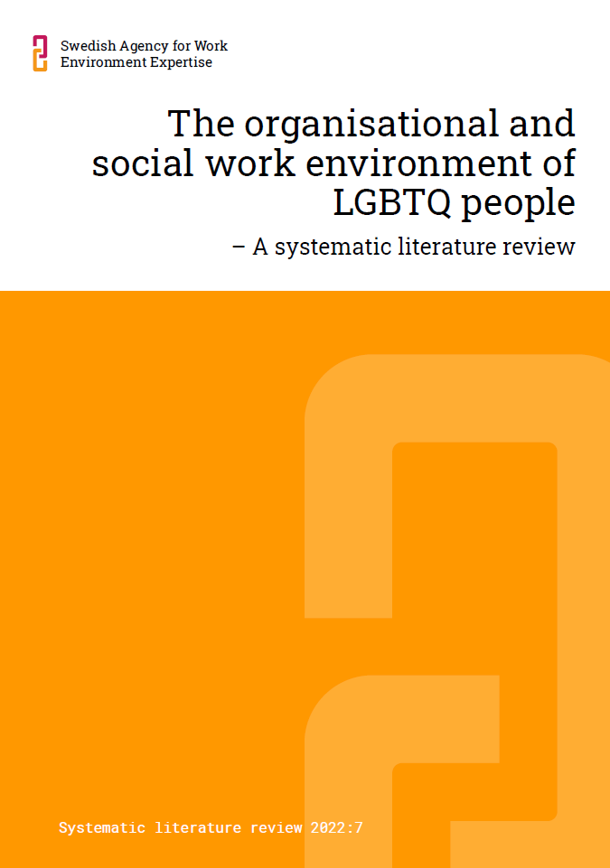Following a government decision in 2020, the Swedish Agency for Work Environment Expertise was commissioned to map and summarize existing research conducted on the organizational and social work environment for LGBTQ people. In response to this, the agency initiated a systematic literature review project focusing on factors that promote or hinder LGBTQ people within the organizational and social work environment.