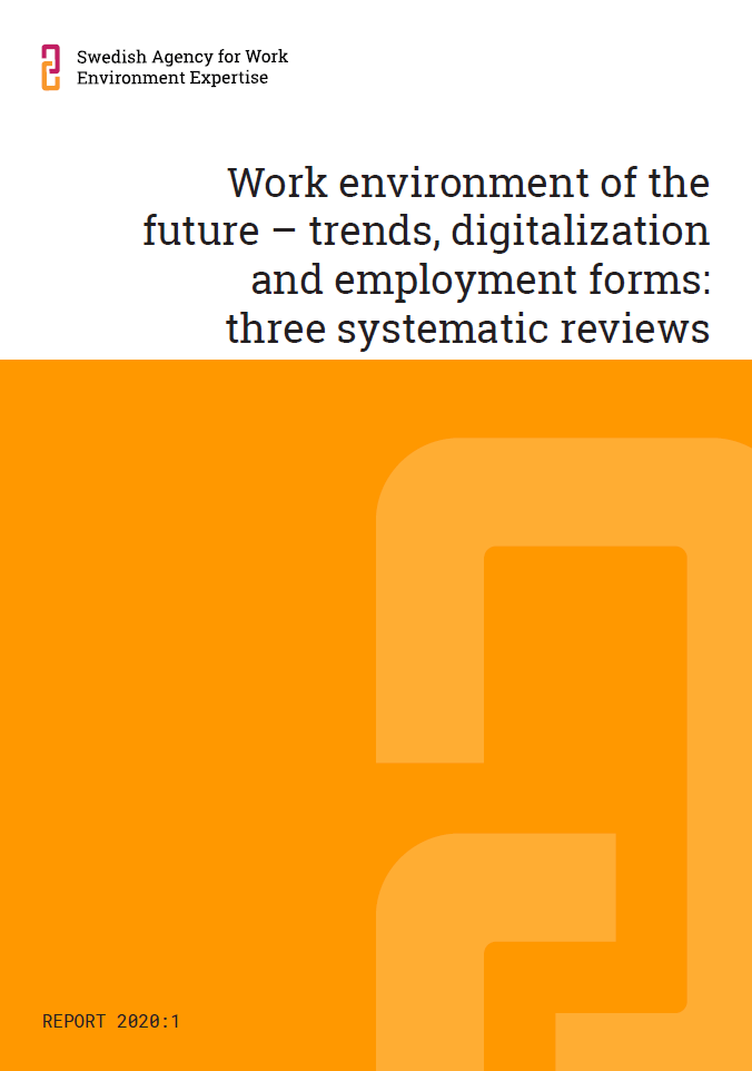 The overarching purpose of this literature review is to provide a summary and overview of knowledge derived from research literature on work environment trends, particularly digitalization and new employment forms, with an emphasis on consequences for the work environment.