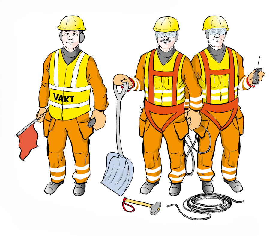 Alla i snöskottarlaget måste veta hur signalerna ska tolkas. För att snö och is ska kunna tas ner på ett säkert sätt från tak kan följande signaler användas: