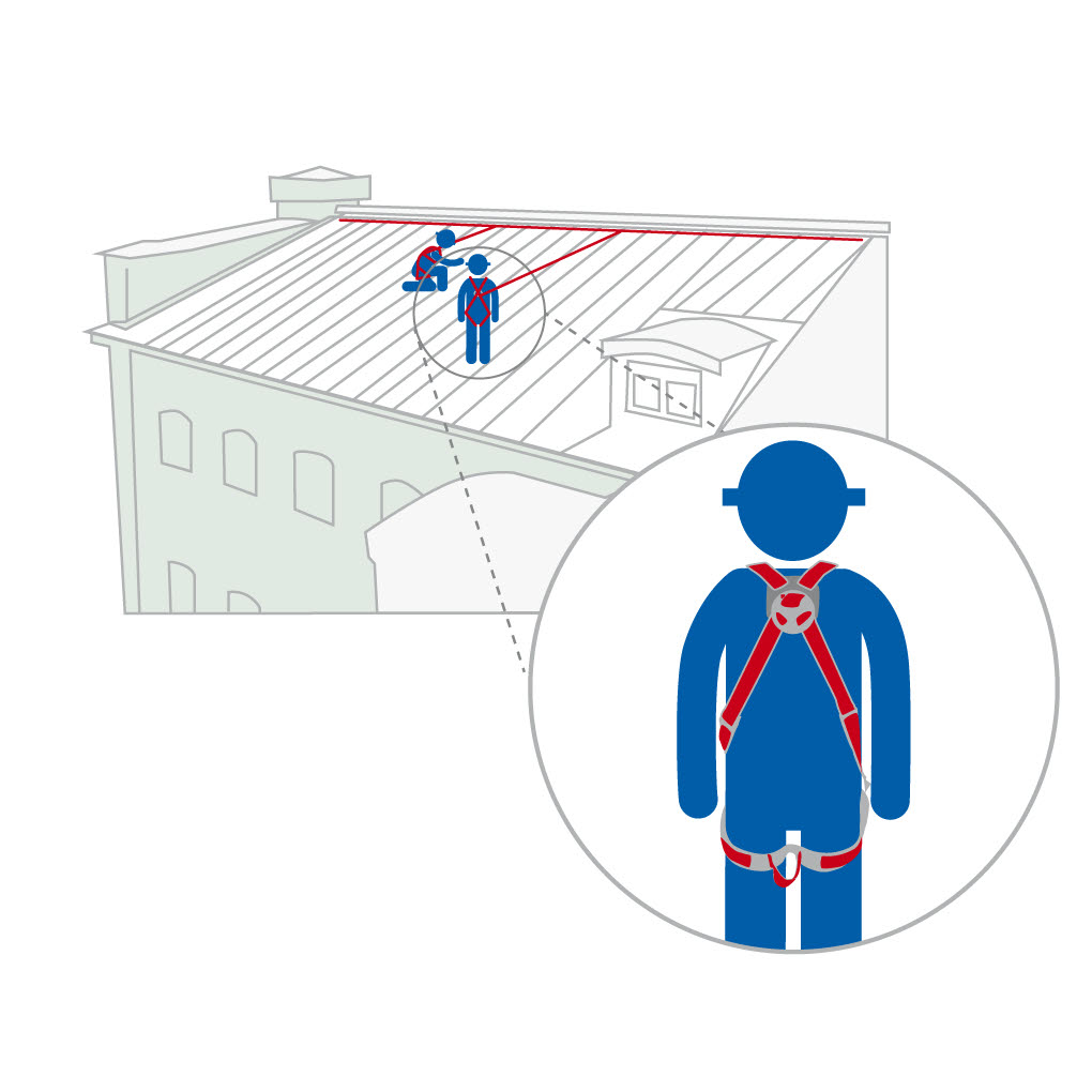 Du kan behöva använda personligt fallskydd när du monterar det gemensamma fallskyddet, exempelvis skyddsräcken på husgavlar.