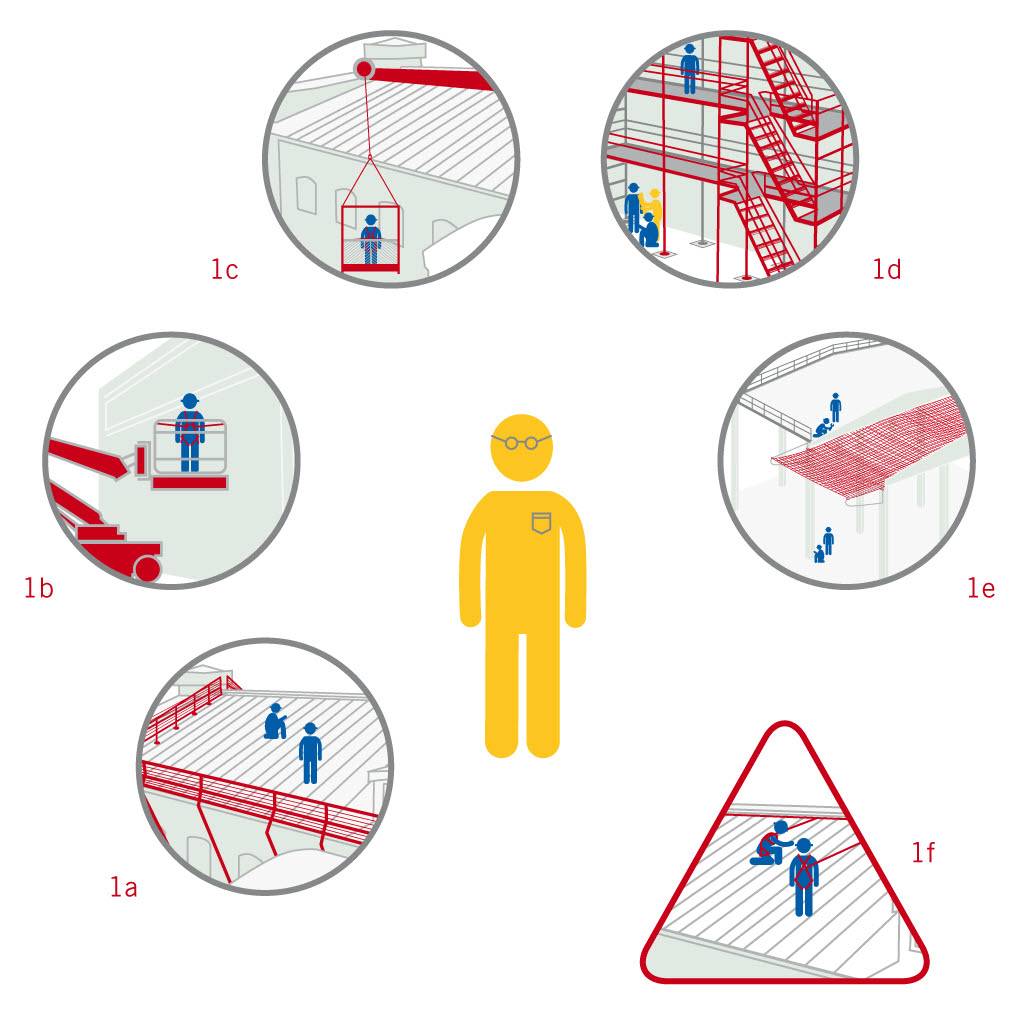 - tillräckligt avstånd till underliggande arbeten så att en fallande person inte slår i något